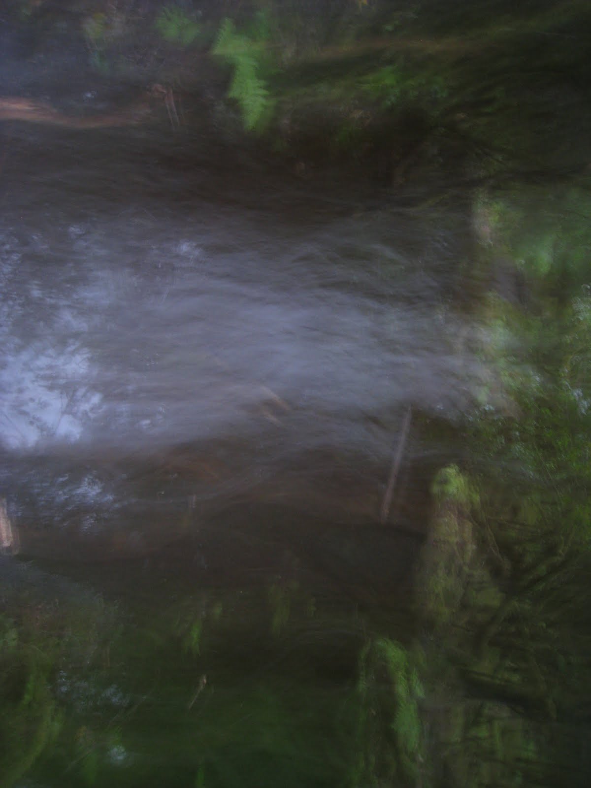 It started to get dark on the way back down, so she really had to hurry.. Unfortunately, there was an extremely flooded area of the trail just before the kettle pond. It was so dark that she couldn't see in order to find a way around the water. She had to go through it. I can hardly make out what in the world these are pictures of, but I suppose it's the flooded area she had to wade through. Not being able to see the trail while wading through almost knee-high water.. not the best feeling, I suppose.