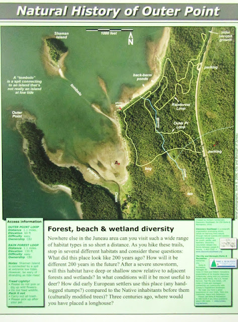 Today we decided to walk along the Outer Point Trail. This is my absolute favorite trail to walk along. It's on North Douglas, so we had to drive across the Gastineau Channel and down the Douglas Highway to get there.